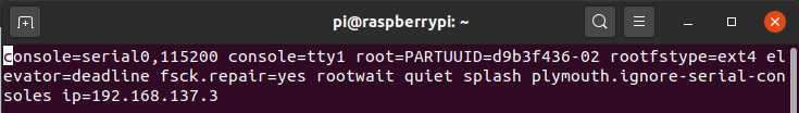 console=serial0, 115200 console=tty1 root=PARTUUID=d9b3f436-02 rootfstype=ext4 elevator=deadline fsck.repair=yes rootwait quiet splash plymouth.ignore-serial-consoles