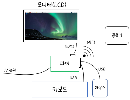 장점: 그냥 컴퓨터 연결하듯이 LCD, 키보드, 마우스 세가지로 화면을 띄울 수 있고 인터넷이야 파이 안에 와이파이가 내장되어 있어서 와이파이로 연결하던 파이 랜선을 꽂던 둘중하나 골라하면 됨.