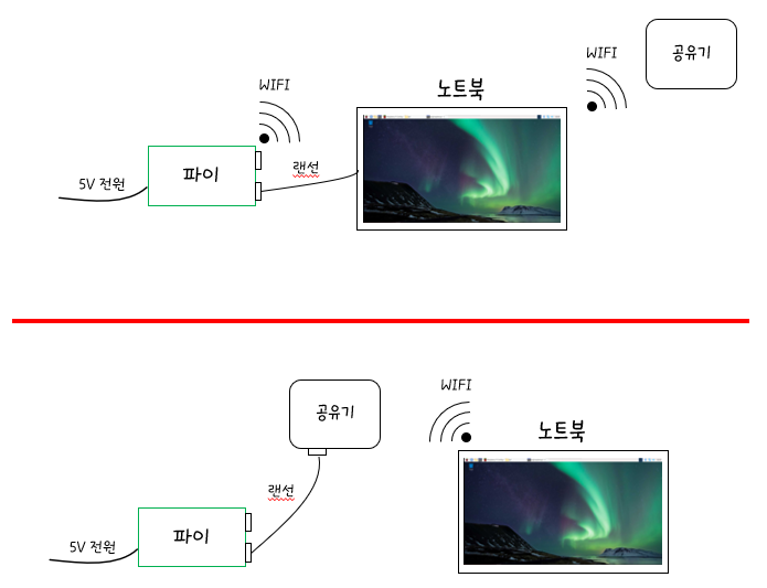 장점: 설정만 잘한다면 어디서든지 파이를 갖고다니면서 하거나 (위)