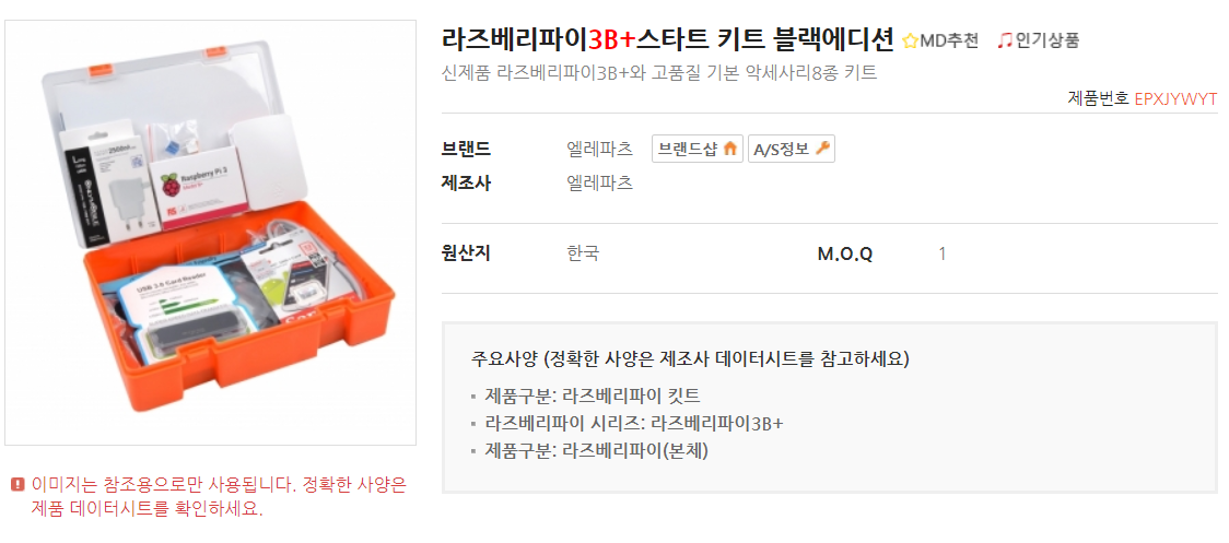 메카솔루션에서 파는 라즈베리파이 키트만 해도