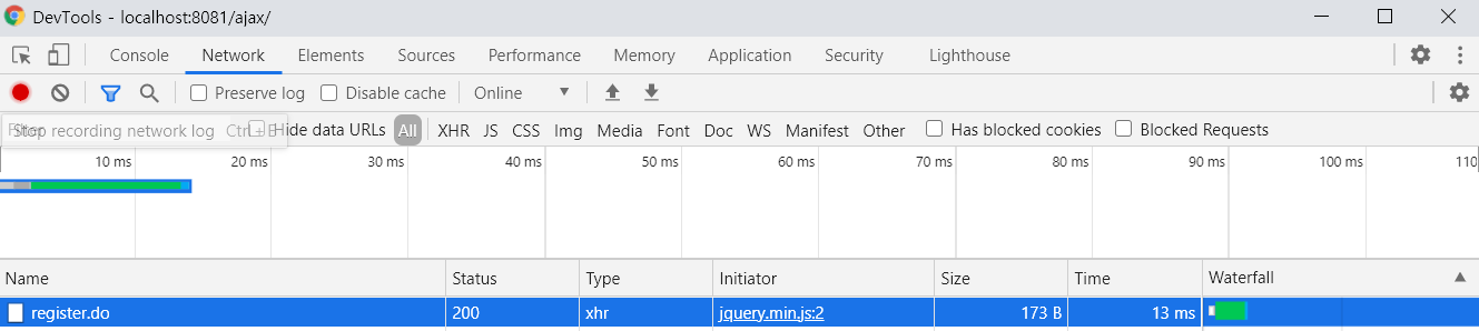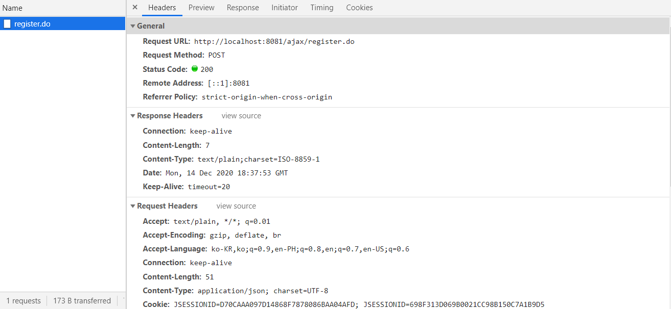 네트워크 탭 에서 요청한 url인 register.do 를 클릭하면