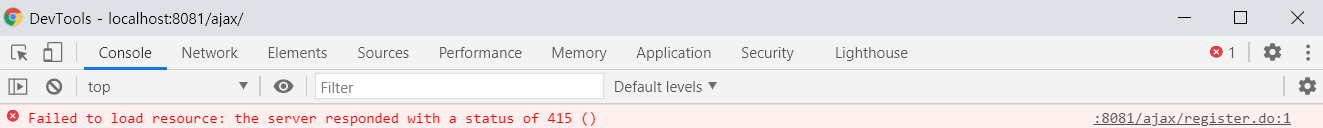 반드시 contentType을 "application/json; charset=utf-8" 로 지정해야 415 에러가 발생하지 않습니다.