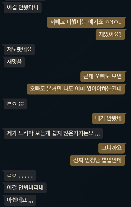 '근데 오빠도 제작년에는 이제 잘시간이라고 롤 끄고 아침 8시에 일어나고 그랬잖아요 전 그거보고 진짜 대단하다고 생각했는데'